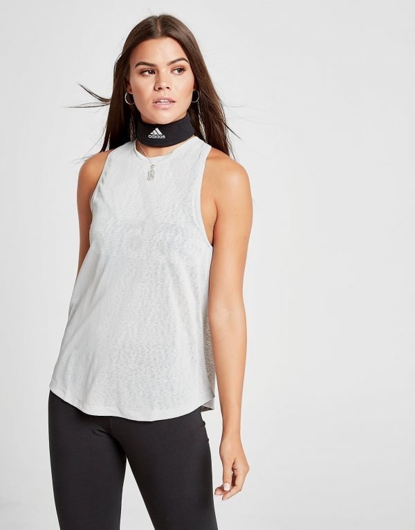 Ready to smash any workout, this women’s Logo Tank Top from adidas pushes you to the next level. Made from a sweat wicking polyester material for cool comfort, the racerback design ensures non-retrictive movement throughout your workout. Coming in a grey colourway, the dipped hem provides extra coverage and the tank is finished with tonal adidas branding to the chest. Our model is 5’7″ and wears a size small.