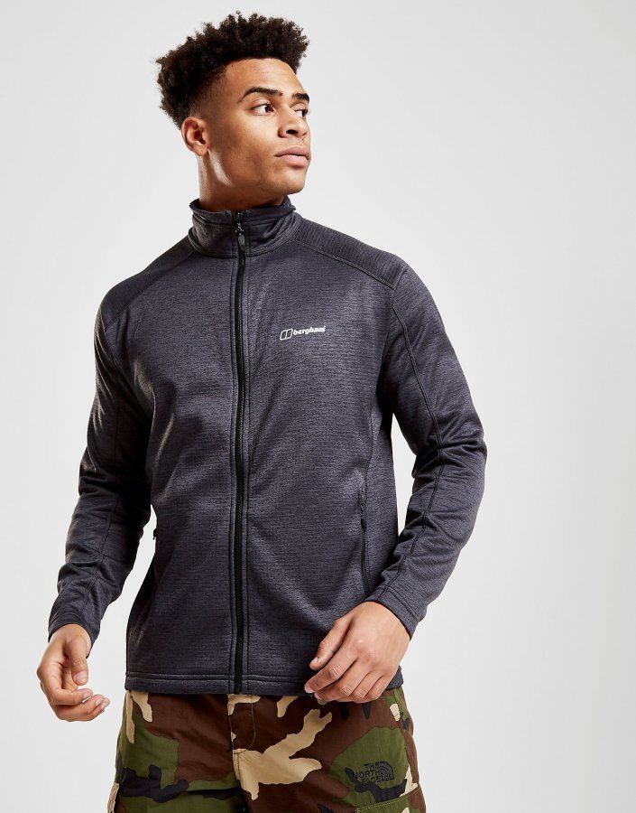Make sure you’re ready for the outdoors with this men’s Spitzer Full Zip Track Top from Berghaus. In a carbon colourway, this track top is made from durable poly to keep you covered and feelin’ comfy. Bringin’ a lightweight wear with fleece lining to keep you warm, this track top has a full front zip, two side pockets, and a mock neck. With raglan style sleeves to keep you movin’ freely, this track top is finished with white Berghaus branding to the chest.
