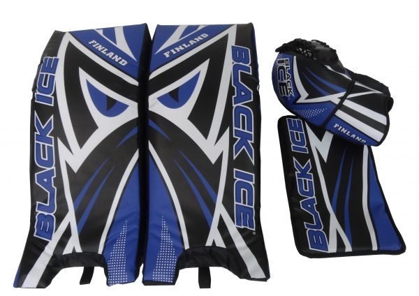 Maalivahdin streethockey setti Finland, sisältää: polvisuojat, kilven ja räpylän. Sopii pallolla ja pehmeällä kiekolla pelaamiseen. Koko noin 120-140 cm pelaajalle.