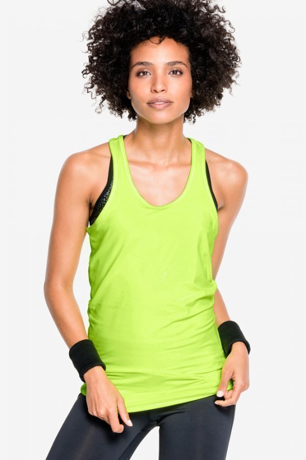 Treenitoppi pehmeää teknistä Fastdry-stretchtrikoota, joka siirtää kosteutta pois ja kuivuu nopeasti. Painijanselkä. Pituus n. 72 cm koossa 38/40. 88% polyesteriä, 12% elastaania. Pesu 40°.