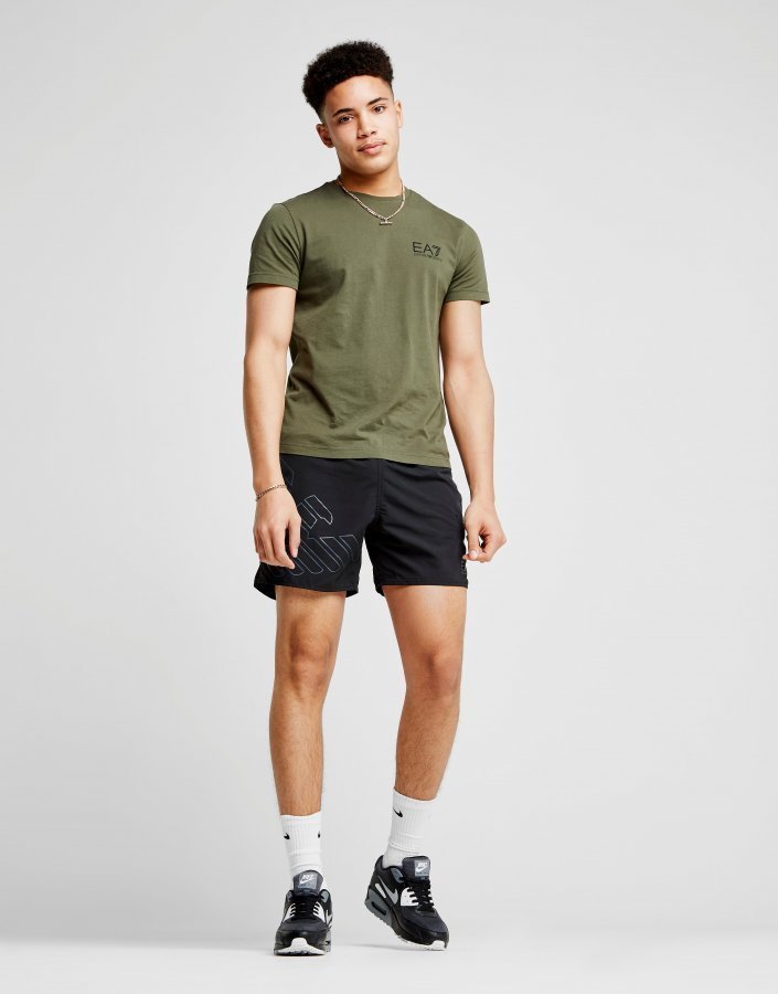 Add premium vibes to your poolside style with these men’s Eagle Tonal Swim Shorts from Emporio Armani EA7. Built from quick drying poly fabric in a black colourway, the shorts feature an adjustable waistband and an internal mesh lining for essential support. With two side pockets and a Velcro-secured pocket to the reverse, they’re finsihed with a subtle yet signature, tonal Eagle logo printed to the right leg, with EA7 branding to the left. Our model is 6’1″ and wears a size medium.