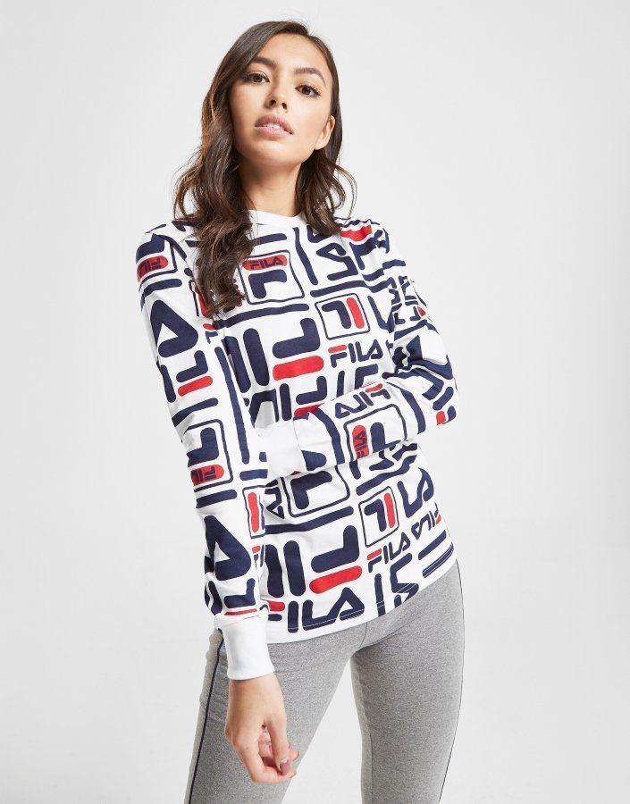 Exclusive to JD. Be bold and rep Fila’s throwback style in this women’s All Over Print Long Sleeve Boyfriend T-Shirt. Made from soft cotton fabric in a white colourway, this tee has a crew neckline and long sleeves for extra coverage on cold days. It’s finished with an unmissable, all-over branded print in Fila’s iconic navy and red design. Our model is 5’6″ and wears a size 8.