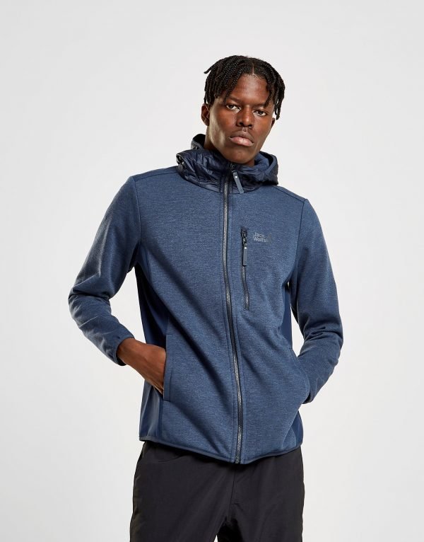 Zip up and get the the coverage you need in this men’s Sky Flex Full Zip Hoodie from Jack Wolfskin. In a night colourway, this hoodei is made from a durable cotton blend, which is fast drying and breathable, while trapping heat to keep you snug when you hit the streets. With a high rise collar, fixed hood and zip through fastening, three zipped pockets keep your essentials safe. It’s finished with signature Jack Wolfskin branding to the chest.